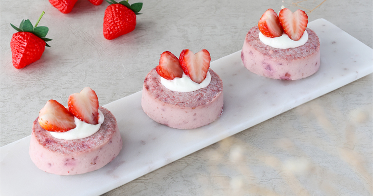 トッピングは苺をハート形に見立てた可愛い仕上げにいたしました。